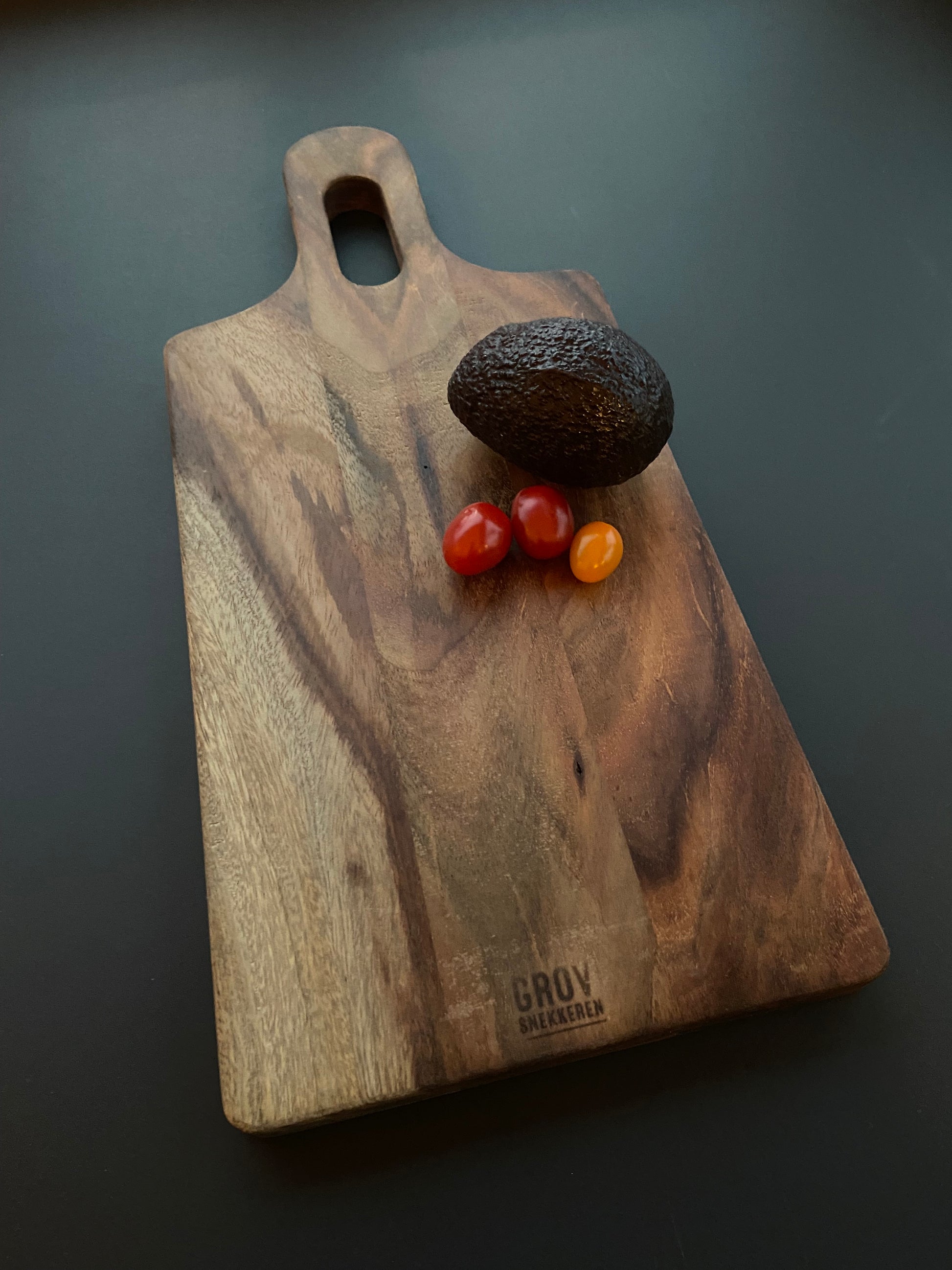 Skjærefjøl i resirkulert indisk rosentre. Dimensjoner: 20 cm x 46 cm x 2 cm